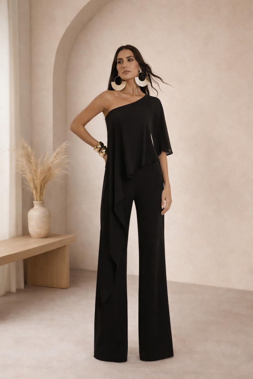 O Macacão Scuba com Blusa Fluída é a união perfeita entre elegância moderna e conforto absoluto. Com design sofisticado e construção impecável, ele entrega presença instantânea — daqueles looks que vestem bem sem esforço e garantem impacto em qualquer ocasião.